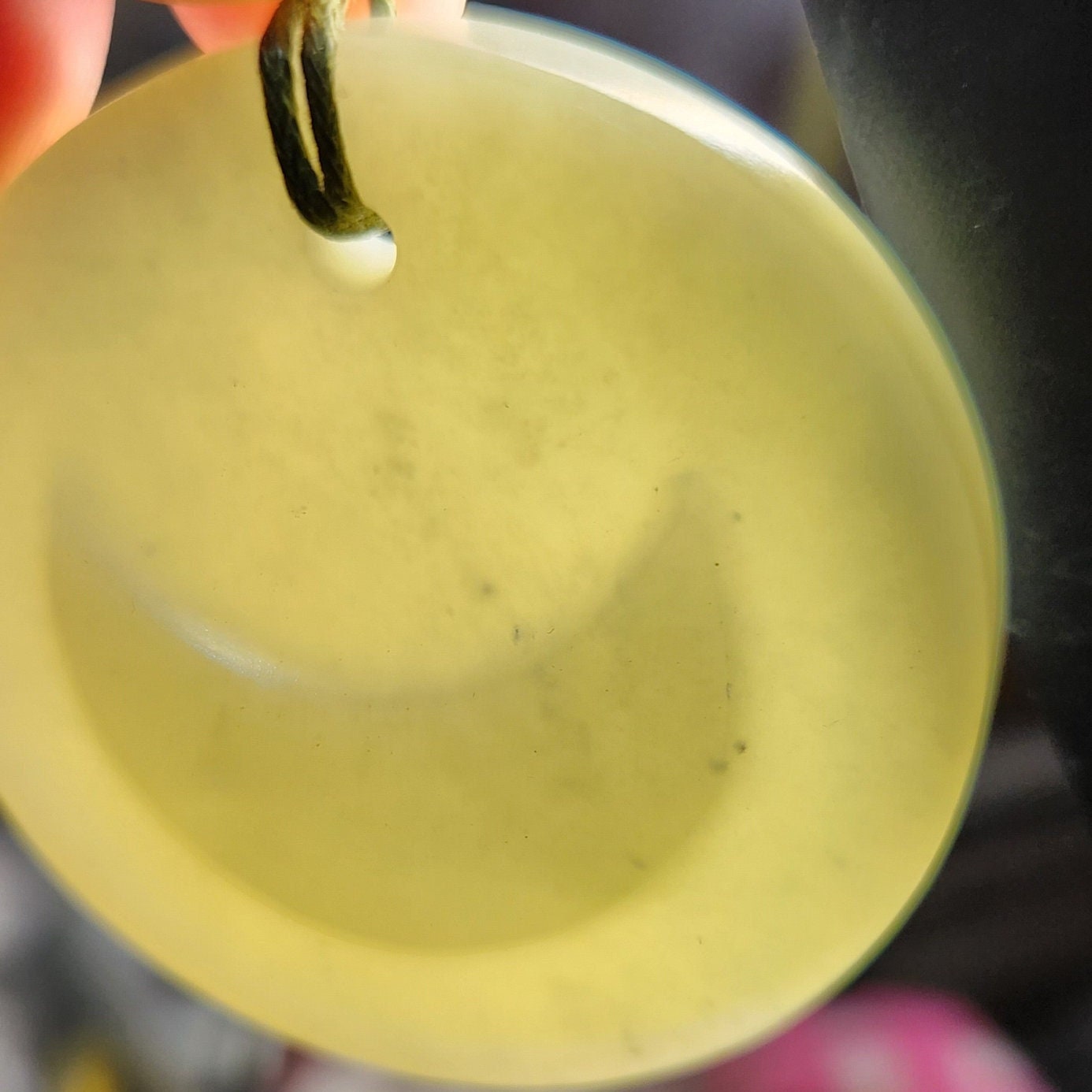 Siberian jade hand carved crescent moon talisman adjustable pendant