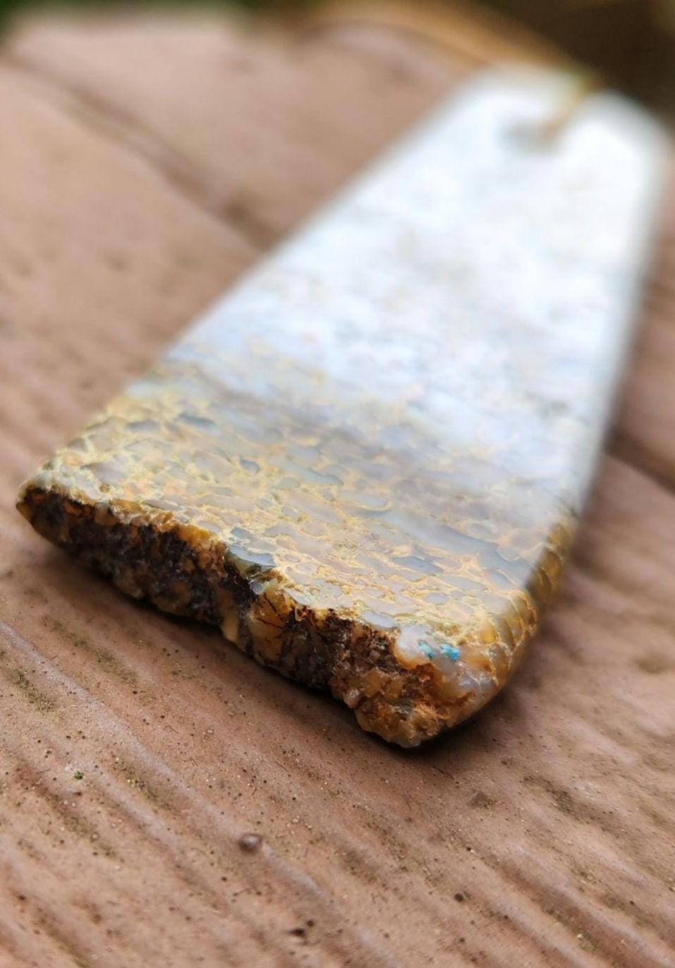 Hand carved and polished live edge white utah gembone pendant. Bound on an adjustable cotton cord.